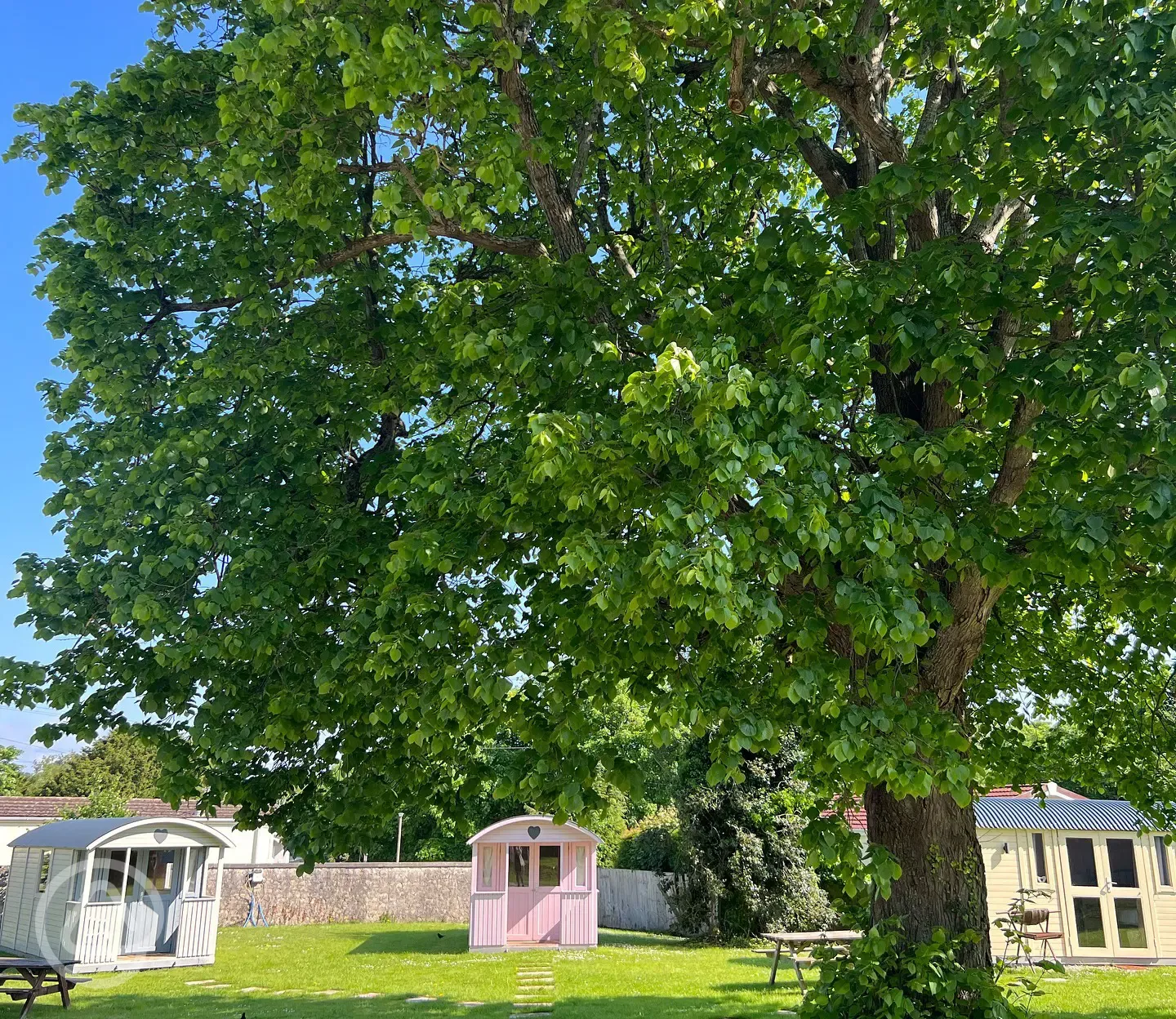 The four and a half acre site at Acorn Camping is surrounded by farmland. There are 75 pitches which can accommodate tents, touring caravans and motorhomes - and pitches are individually marked, some with trees and hedgerows providing extra privacy and shelter. The family orientated site operates a quiet time policy between 11pm and 7am and the managers live on the park to ensure the smooth running of the site. Goodyhoo Glamping provides chic options for glampers on site.