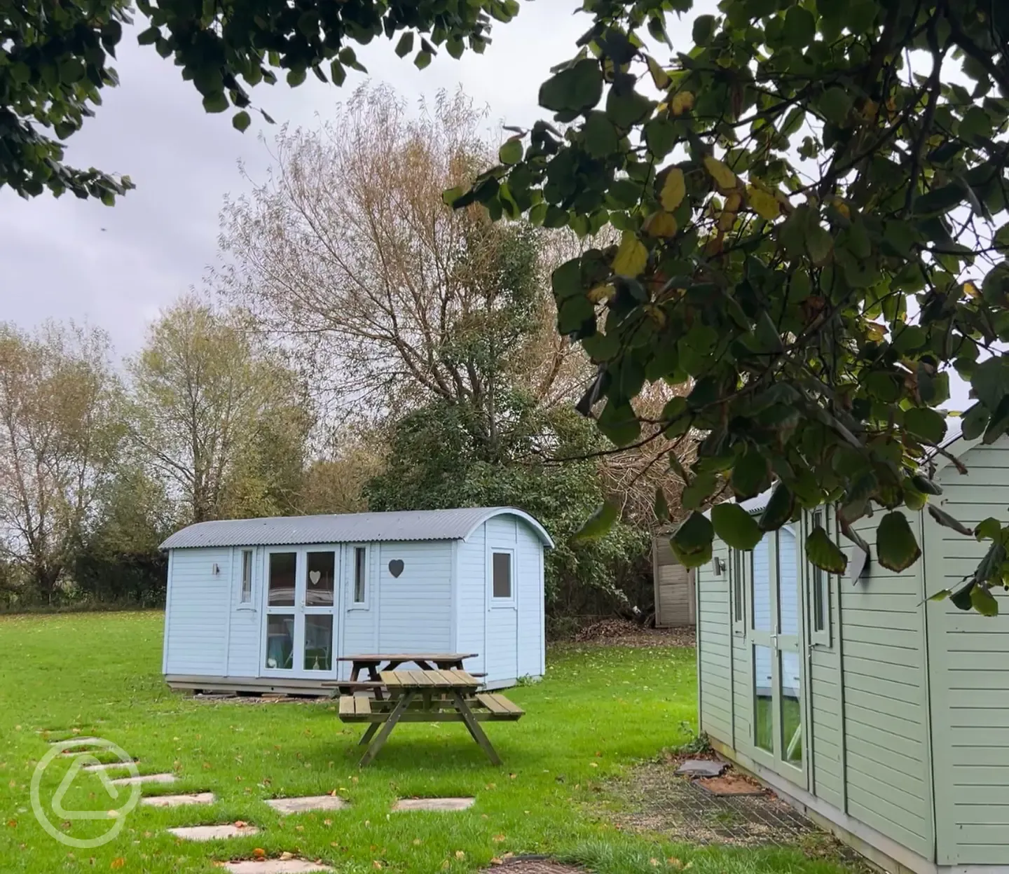 A family and dog friendly glamping site with pods, shepherd's huts, and a cabin. On the edge of the Quantocks.
