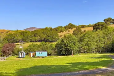 Surrounded by scenic countryside, this adult only site offers an ideal base for exploring the Clwydian Range and Dee Valley National Landscape, with Llangollen just a 10 minute walk away. Enjoy a back-to-basics escape with attractions within walking distance, including Plas Newydd Historic House and Gardens (25 minutes) and Castell Dinas Brân (30 minutes), offering incredible valley views. Choose from 3m x 5m grass and gravel pitches with a 16 amp electric hook up for caravans, campervans, and motorhomes, or 3m x 8m gravel hardstanding pitches (campervans and motorhomes only), also with a 16 amp electric hook up. Electricity is included in the price. Toilet and shower facilities are now available for the 2026 season. Glampers can opt for Emily Rose or Beacon View shepherd's huts, complete with double beds (king-sized in Emily Rose), a kitchenette, a fridge, a cooker, crockery, kettle, and a toaster. Gas, electricity, and heating (electric and log burner) are included, along with bedding and towels. Guests have their own access to a washroom hut outside the hut with bathroom facilities shared between the 2 shepherd's huts. Just a five minute drive away, Horseshoe Falls on the River Dee is ideal for canoeing, boating, and riverside walks, while Pontcysyllte Aqueduct is only ten minutes away for more water-based fun. Dogs are welcome onsite! BBQs and campfires are permitted, provided they are raised off the ground.